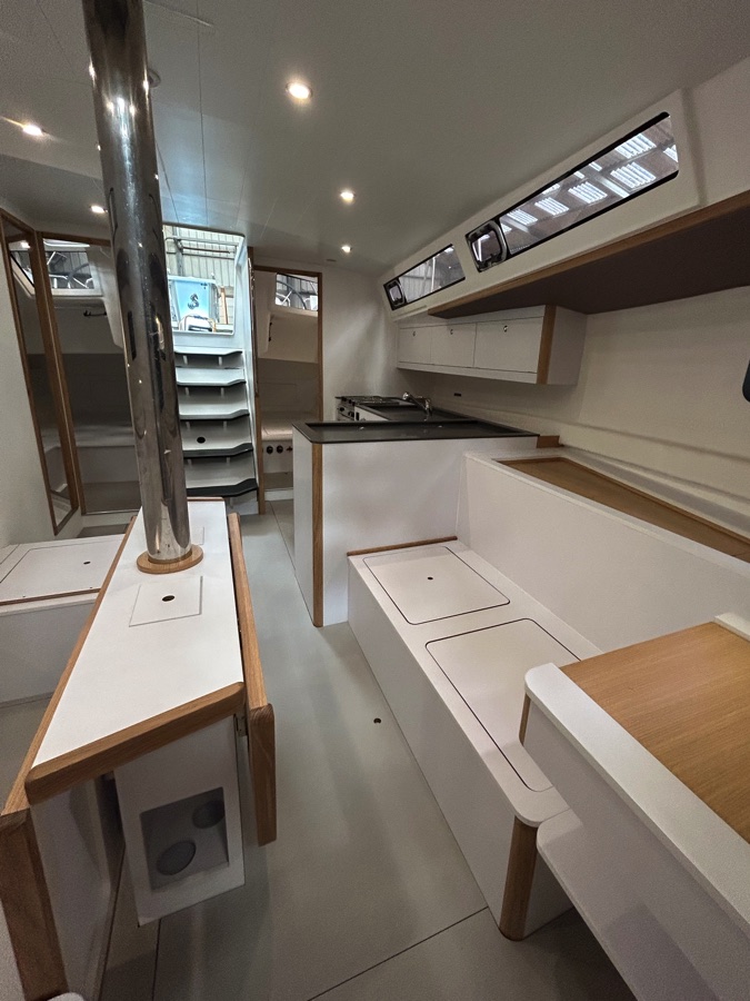 Ce passionné de voile saisi l’opportunité et décide de personnaliser l’intérieur pour faire naviguer un public curieux et aguerrie via la location de voilier unique. Il découvre la démarche de Dream Racer Boats. Le bureau d’études DRB CONCEPT commence rapidement la phase de design et de conception. L’objectif est de créer un intérieur épuré, facile d’entretien, le tout, en optimisant le gain de performance.